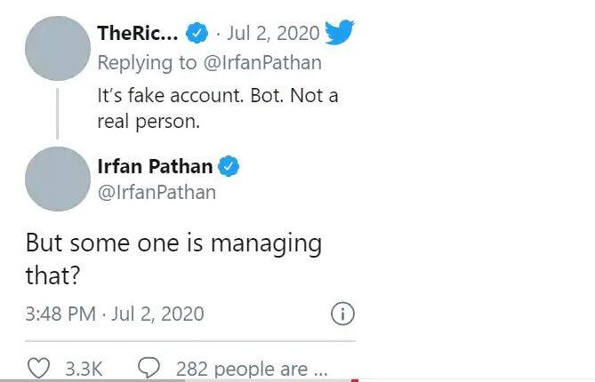 এই ঘটনায় নিজের প্রতিক্রিয়া দিয়েছেন বলি অভিনেত্রী রিচা চাড্ডা ৷ তিনি জানিয়েছেন ইরফানকে এভাবে ব্যক্তিগত আক্রমণ যেখান থেকে করা হয়েছে সেটা একটা ফেক অ্যাকাউন্ট ৷ এর উত্তরে ইরফান পাঠান আবার জানিয়েছেন কিন্তু ফেক হলেও কেউ তো এই অ্যাকাউন্ট ম্যানেজ করেন৷