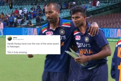 Hardik Pandya - The most down to earth human being. He handed his Man Of The Series award to T Natarajan because he felt he deserved that award. pic.twitter.com/T9DZ6zjhNc