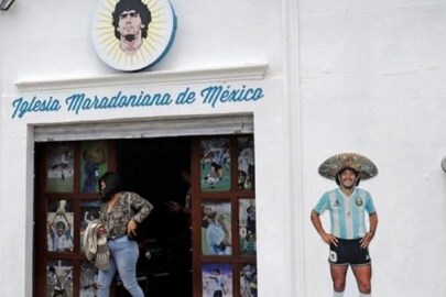 গির্জার সামনে দুটো ফুলদানির ওপর ফুটবল সাজিয়ে রাখা হয়েছে। ফটক দিয়ে ঢোকার পথে ডান পাশে আর্জেন্টিনার জার্সি পরা মারাদোনার হাস্যোজ্জ্বল মুখের ছবি এবং মাথায় ঐতিহ্যবাহী মেক্সিকান টুপি। ১৯৮৬ মেক্সিকো বিশ্বকাপে আর্জেন্টিনাকে শিরোপা জেতানো কিংবদন্তি গত বছরের ২৫ নভেম্বর দীর্ঘদিনের শারীরিক অসুস্থতার কারণে মারা যান।