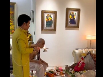 সচিন এদিন হলুদ রঙের পোশাকে গণপতির আরাধনা করলেন। ঘরের ভেতরে গণপতির মূর্তি প্রতিষ্ঠা করে হল পুজো। সচিনের পরিবারের সকলে ছিলেন পুজোয়। ছিলেন সারা, অর্জুনও। সচিন একেবারে গায়ে পৈতে ঝুলিয়ে পুজো-অর্চনা করলেন।