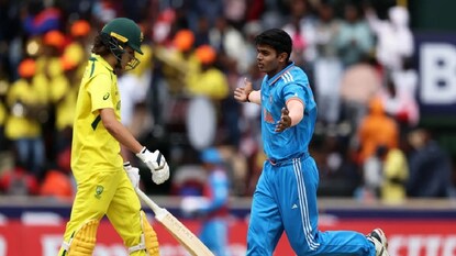 ভারতের নমন তিওয়ারি ২ টি ও রাজ লিম্বানি একটি উইকেট পেয়েছেন। রায়ান হিকস ও হরজস সিং অস্ট্রেলিয়ার হয়ে জুটি গড়ার চেষ্টা করছেন।