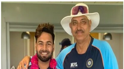 Pant offering his champagne to Ravi Shastri#INDvENG #OldTrafford #Pant #TeamIndia pic.twitter.com/n9HguNNuID