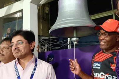 কলকাতা: নব নির্মিত ইডেন ইডেন গার্ডেন্সে খেলা শুরুর আগে বেল বাজানো একটা প্রথা হয়ে দাঁড়িয়েছে। কোন কিংবদন্তী বা বিশিষ্ট ব্যক্তিদের দিয়ে এই ঐতিহ্যশালী ঘণ্টা বাজানো হয়। শুক্রবার আইপিএলে ইডেনে মুখোমুখি কলকাতা নাইট রাইট রাইডার্স ও সানরাইজার্স হায়দরাবাদ। আর এমন পরিস্থিতিতে কিংবদন্তী ব্রায়ান লারা এই বেল বাজিয়ে খেলা শুরু করেন । মাঠে যখন লারার মত মহাতারকা উপস্থিত তাঁর থেকে ভালো কেউ হতেই পারে না বেল বাজানোর জন্য।