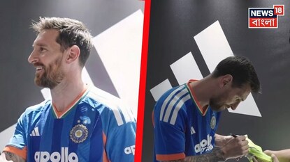 Lionel Messi Team India Jersey: ভারতীয় ক্রিকেট দলের জার্সি গায়ে মেসি ! এক ফ্রেমে দেখা গেল মেসি, কুলদীপ, রেণুকাদের