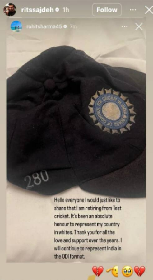 রোহিতের অবসরে আবেগঘন প্রতিক্রিয়া স্ত্রী রীতিকার! মুহূর্তে ভাইরাল ইনস্টাগ্রাম স্টোরি
