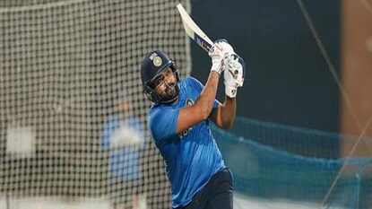 Captain Rohit sharma hitting the bowlers in nets. pic.twitter.com/D5Kaou4Z17