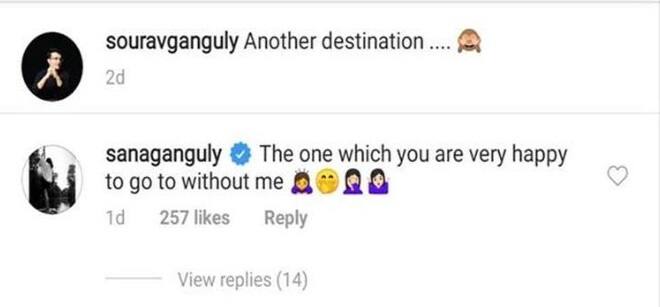ফের আরও একবার প্রকাশ্যেই বাবার প্রতি ক্ষোভ উগড়ে দিলেন সানা ৷ সম্প্রতি সৌরভ উড়ে গিয়েছেন লন্ডনে ৷ উড়ানে বসে সেই ছবিও ইনস্টাগ্রামে পোস্ট করেছেন দাদা ৷ আর সেই ছবিতে সৌরভের ক্যাপশন ছিল, ‘অ্যানাদার ডেস্টিনেশন’ ৷