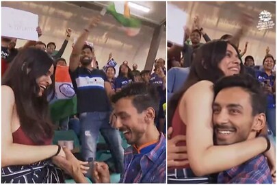 #সিডনি: খেলা দেখতে গিয়ে ভরা গ্যালারিতে প্রেমিকা প্রেম নিবেদন বা বিয়ের প্রস্তাব দেওয়াটা রীতিমত ট্রেন্ড হয়ে গিয়েছে। আন্তর্জাতিক ক্রিকেট থেকে আইপিএল এমনকী ফুটবল মাঠেও সাম্প্রতিক কিছু সময়ে দেখা গিয়েছে এই দৃশ্য। প্রিয় মানুষকে মনের কথা জানানোর মুহূর্তটি স্মরণীয় করে রাখতেই এমন কাণ্ড ঘটাচ্ছেন প্রেমিকরা। এই ঘটনার পুনরাবৃত্তি হল ভারত বনাম নেদারল্যান্ডস ম্যাচে।