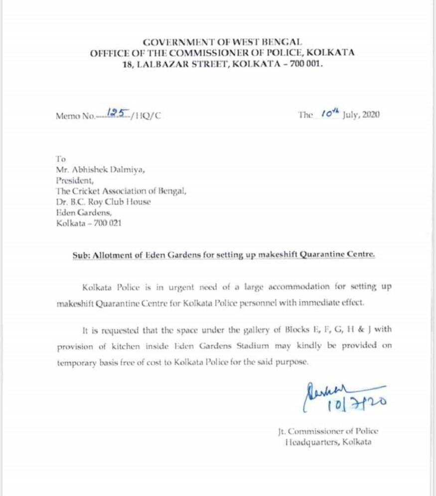 ইডেনের মূল মাঠেও কিছু করা হচ্ছে না। নবনির্মিত পঙ্কজ গুপ্ত ইনডোর সেন্টারটা বন্ধ রাখা হবে। কোয়ারেন্টাইন হিসেবে চিহ্নিত হওয়া ব্লক গুলোর থেকে বাকি ব্লক গুলোকে আলাদা করে রাখা ব্যবস্থা করা হচ্ছে।কোয়ারেন্টাইন ব্লক গুলি ব্যবহার করা হবে ক্ষুদিরাম অনুশীলন কেন্দ্রের আশেপাশের গেট গুলি থেকে। রাজ্যে করোনা সংক্রমণ শুরু হওয়ার প্রথম দিকেই সৌরভ ঘোষণা করেছিলেন প্রয়োজনে ইডেনকে কোয়ারেন্টাইন সেন্টার হিসেবে ব্যবহার করার জন্য। মুখ্যমন্ত্রীর কাছে বিষয়টি সৌরভ নিজে জানিও দিয়েছিলেন। করোনার প্রভাব রাজ্যে ক্রমশ বাড়ছে। আগামী দিনে পরিস্থিতি আরও জটিল হওয়ার সম্ভাবনা। তাই সব দিক খতিয়ে দেখে ইডেনের গ্যালারিতে পুলিশের জন্য কোয়ারেন্টাইন সেন্টার সিদ্ধান্ত।শুক্রবার সিএবি কর্তাদের সঙ্গে পুলিশের প্রতিনিধিদল পরিদর্শন করেছেন।