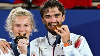 প্যারিস: চেক প্রজাতন্ত্রের টেনিস তারকা জুটি টমাস ম্যাচাক এবং কেটরিনা সিনিয়াকোভা ইতিমধ্যেই সোনা জিতে শিরোনামে উঠে এসেছেন। প্যারিস অলিম্পিক্সে মিক্সড ডাবলসে সোনা জেতা ছাড়াও সংবাদ শিরোনামে আসার অন্য কারণ রয়েছে এই তারকা জুটির। প্যারিস অলিম্পিক্সের মাঝেই তাঁদের বিচ্ছেদ হয়ে যায় বলে সংবাদ সংস্থা সূত্রে খবর। কিন্তু, এই বিচ্ছেদ কোনও ভাবেই তাঁদের পারফরমেন্সে প্রভাব ফেলে নি।