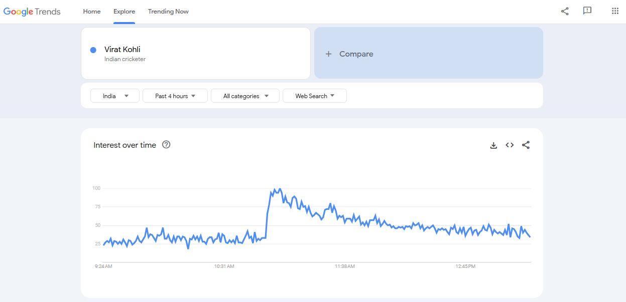 দিল্লি বনাম রেলওয়েজ ম্যাচে ১৫ বলে মাত্র ৬ রান করেন কোহলি। আগের বলে চার মারার পরেই হিমাংশু সাঙ্গওয়ানের বল কোহলির অফ স্ট্যাম্প উড়িয়ে দেয়।