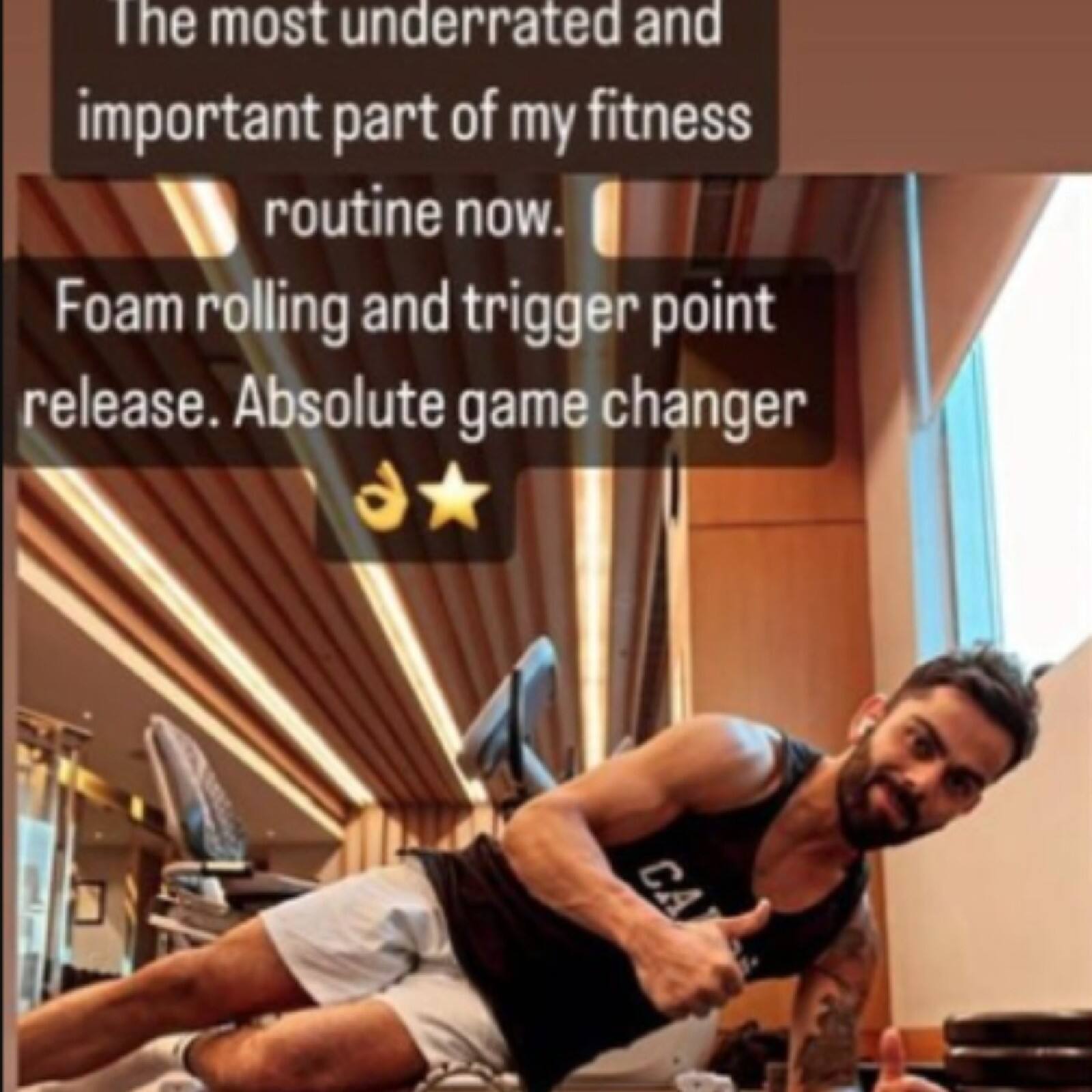 এবার টি২০ বিশ্বকাপের আগে ফিটনেসের উপর বিশেষ নজর দিয়েছেন বিরাট কোহলি। নিজের ইনস্টা স্টোরিতে ফিটনেস ট্রেনিংয়ের ছবি শেয়ার করে বিরাট কোহলি লিখেছেন, 'আমার ফিটনেস রুটিনে এখন সবথেকে সাধারণ অথচ গুরুত্বপূর্ণ হল ফোম রোলিং এবং ট্রিগার পয়েন্ট রিলিজ। এটা খেলা ঘুরিয়ে দিতে পারে।' এই পদ্ধতি বিরাটকে আরও বেশি ফিট করতে তুলছে।