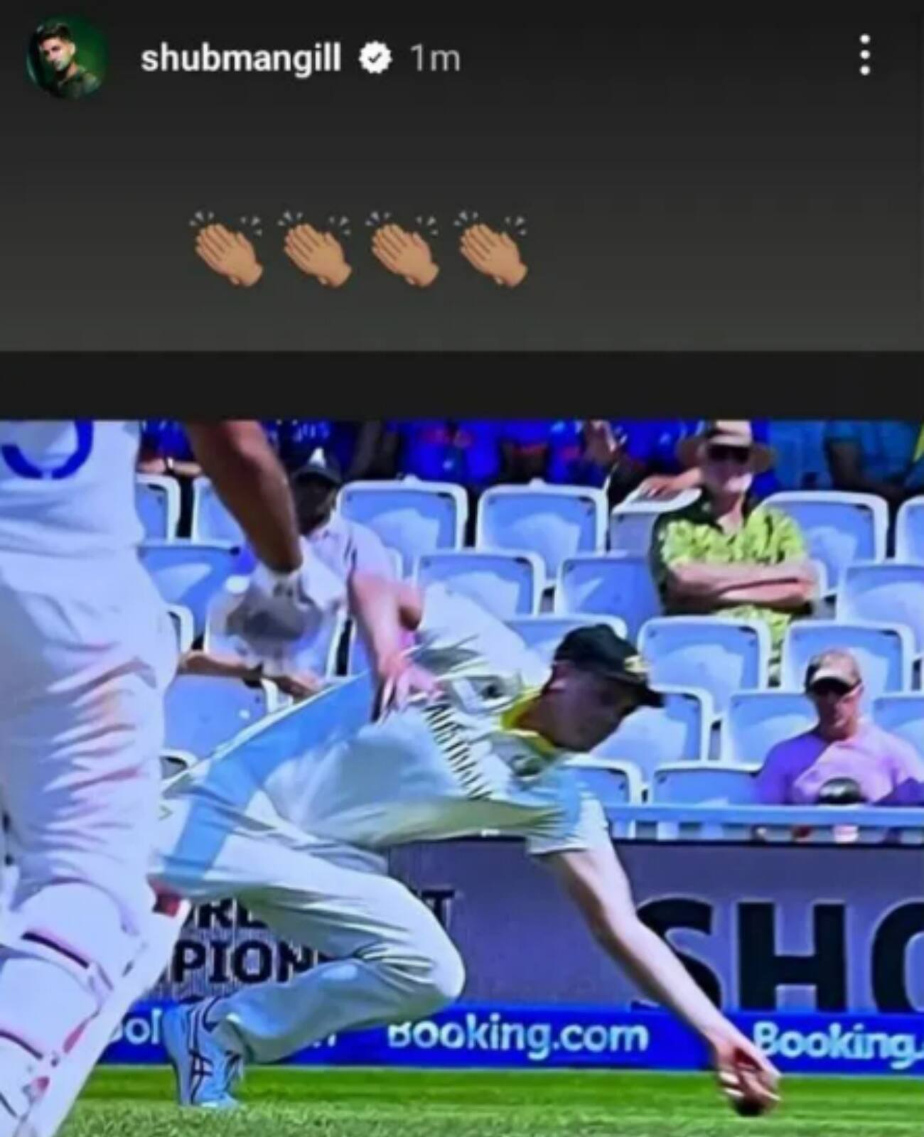 চতুর্থ দিনের খেলা শেষে সোশ্যাল মিডিয়ায় গ্রিনের ক্যাচ নেওয়ার ছবি দিয়ে আর ইমোজি দিয়ে নীরব প্রতিবাদ জানিয়েছেনশুভমান গিল। ট্যুইটারে ছবি পোস্ট করে গিল আতসকাচ ও মাথা চাপড়ানোর ইমোজি দিয়েছেন। আর নিজের ইনস্টা স্টোরিতেও গ্রিনের ক্যাচের ছবি দিয়ে হাততালি দেওয়ার ইমোজি দেন শুভমান গিল। মাঠেও আম্পায়ারের সিদ্ধান্তের পর গিলকে বিরক্ত প্রকাশ করতে দেখা গিয়েছিল। সোশ্যাল মিডিয়ায় ব্যাঙ্গাত্মক পোস্ট সেই বিরক্তিরই বহিঃপ্রকাশ।