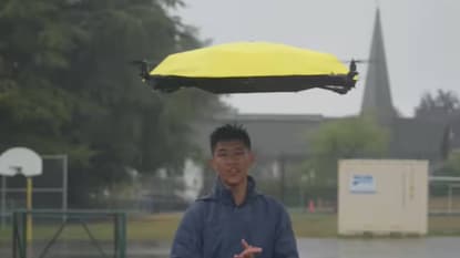 ইউটিউব চ্যানেল আই বিল্ড স্টাফের স্রষ্টা ইঞ্জিনিয়ার জন সে একটি হাত-মুক্ত উড়ন্ত ছাতা তৈরি করেছেন যা তিনি যেখানেই যান না কেন তাকে অনুসরণ করতে পারে। দুই সপ্তাহের স্কুল বিরতির একটি সাধারণ প্রকল্প হিসেবে যা শুরু হয়েছিল তা চ্যালেঞ্জে ভরা এক বছরের দীর্ঘ যাত্রায় পরিণত হয়েছিল। সে-এর প্রাথমিক সংস্করণগুলি একটি হ্যান্ডহেল্ড কন্ট্রোলারের উপর নির্ভর করত, কিন্তু পরবর্তীতে, তার দর্শকদের ধারণার সাহায্যে, তিনি একটি ছাতা তৈরি করেছিলেন যা তার গতিবিধি ট্র্যাক করতে পারে এবং স্বয়ংক্রিয়ভাবে তার উপরে থাকতে পারে।