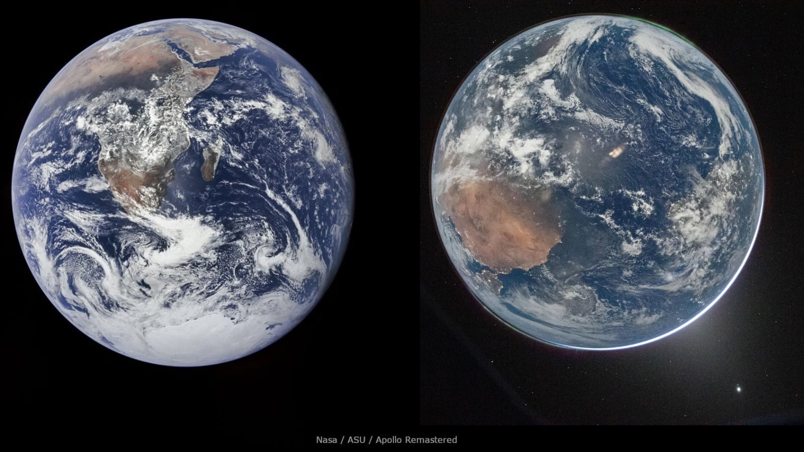 অন্য একজন ৫০ বছরের ব্যবধানে তোলা দুইটি ছবির তুলনা করে লিখেছেন, “Apollo 17 (1972) বনাম Artemis II (2026)। গভীর মহাকাশ থেকে তোলা পৃথিবীর দুইটি ছবি। কোনও পার্থক্য খুঁজে পাচ্ছেন?”