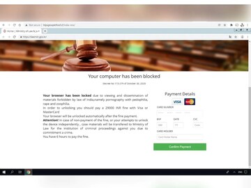 Twitter-এ ইন্টারনেট সিকিউরিটি রিসার্চার রাজশেখর রাজাহারিয়ার (Rajshekhar Rajaharia) রিপোর্ট অনুসারে, ওই পপ-আপ ব্যবহারকারীদের সতর্ক করে যে পর্ন দেখার কারণে তাদের ব্রাউজার লক করা হয়েছে। পপ-আপ ব্রাউজারটি আনব্লক করার বিনিময়ে ব্যবহারকারীদের কাছ থেকে অর্থ চাওয়া হয়। পপ-আপটি এমনভাবে সাজানো থাকে যাতে মনে হয় এটি আইন ও বিচার মন্ত্রণালয়ের থেকে পাঠানো হয়েছে। এতে বলা হয় ব্যবহারকারীর কম্পিউটার ডিক্রি নম্বর ১৭৩-২৭৯ এর অধীনে "ব্লক করা হয়েছে"৷ এটি ব্যবহারকারীদের সতর্ক করে যে ব্রাউজারটি লক করা হয়েছে "ভারতের আইন দ্বারা নিষিদ্ধ সামগ্রী দেখা এবং প্রচার করার কারণে” (viewing and dissemination of materials forbidden by the law of India)।