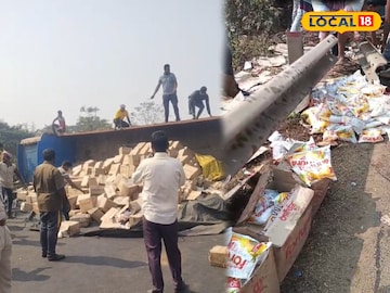 West Medinipur News: ট্রাক উলটে কেলেঙ্কারি কাণ্ড! জাতীয় সড়কের উপর যত্রতত্র ছড়িয়ে রান্নার তেলের কাঁড়ি কাঁড়ি প্যাকেট, লোকজনকে আর ধরে রাখে কে