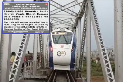 খড়গপুর: বাতিল করা হল হাওড়া- পুরী রুটে বন্দে ভারত এক্সপ্রেস। সোমবার, ২২ শে মে বাতিল করা হলো হাওড়া থেকে পুরীগামী বন্দে ভারত এক্সপ্রেস।