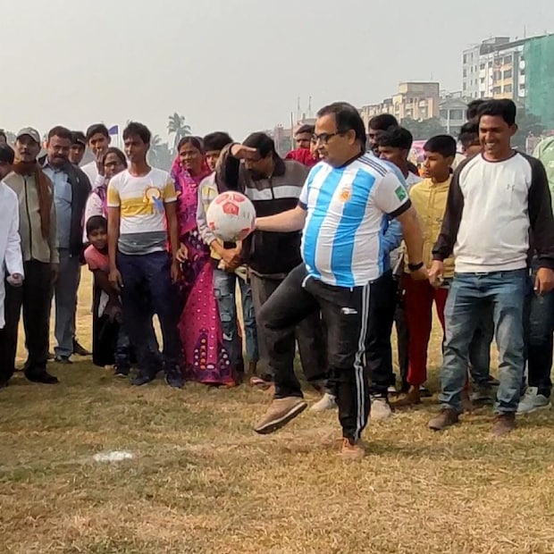 হলদিয়া হেলিপ্যাড ময়দানে এক ফুটবল প্রতিযোগিতার আয়োজন করা হয়। সেখানে আর্জেন্তিনার জার্সি গায়ে চুটিয়ে ফুটবল খেললেন তৃণমূল মুখপাত্র কুণাল ঘোষ।