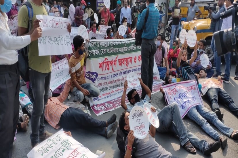 SSC Preotest: SSC চাকরিপ্রার্থীদের অভিনব বিক্ষোভ! মুখ্যমন্ত্রীর বাড়ির অদূরে রাস্তায় শুয়ে প্রতীকী প্রতিবাদ