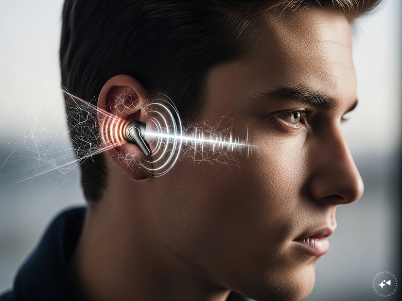 সাধারণ স্পিকারের তুলনায় ইয়ারবাড কানের ভেতরে বসে সরাসরি কানের পর্দায় শব্দ পাঠায়। দীর্ঘ সময় ধরে বেশি ভলিউমে শব্দ শোনার ফলে কানের ভেতরের সূক্ষ্ম ‘হেয়ার সেল’ বা শ্রবণ কোষ ক্ষতিগ্রস্ত হতে শুরু করে। এই কোষগুলি একবার নষ্ট হলে আর নতুন করে তৈরি হয় না। ফলে শ্রবণশক্তি হ্রাস স্থায়ী হয়ে যায় এবং শুরুতে অনেক সময় কানে ভোঁ ভোঁ শব্দ হওয়া (টিনিটাস) বা ভিড়ের মধ্যে কথা বুঝতে অসুবিধার মাধ্যমে তা প্রকাশ পায়। (Representative Image: AI Generated)