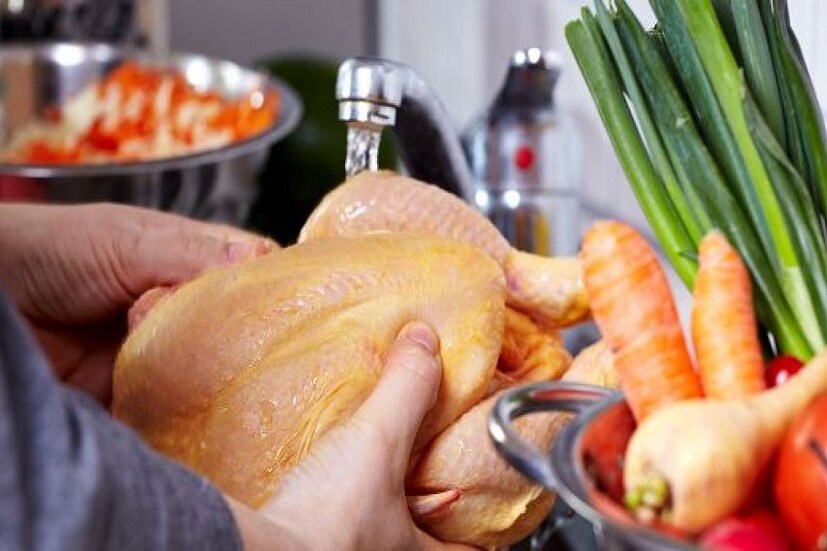 রগির মাংসে থাকে স্যালমোনেলা নামে অত্যন্ত ক্ষতিকর ব্যাক্টেরিয়া। কলের জলে বার বার ধুলেও তা দূর করা অসম্ভব। উল্টে ধোওয়ার সময় সেই ব্যাক্টেরিয়া হাতে লেগে যায় এবং শরীরের বিভিন্ন অংশে ছড়িয়ে পড়ে। জীবাণু ছড়িয়ে পড়ে কিচেন সিঙ্কেও। এর হাত থেকে বাঁচতে হলে বাজার থেকে চিকেন কিনে এনে সরাসরি সেদ্ধ করে ফেলুন। (Photo: collected)