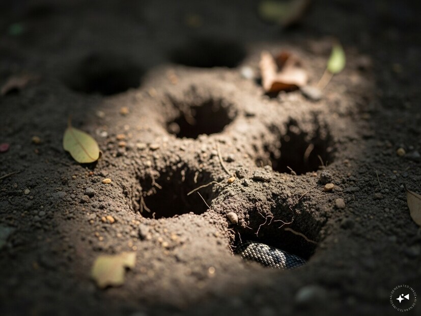 *বাগানে মাটিতে গর্ত দেখলে সঙ্গে সঙ্গে সাপ বলে ধরে নেবেন না। আসলে, সাপ কোনও গর্ত তৈরি করে না। তারা পিঁপড়ে এবং ইঁদুরের তৈরি করা গর্তে বাস করে। সাপদের মধ্যে কেবল কোবরা এবং কিং কোবরা বাসা তৈরি করতে পারে, কিন্তু তারা এভাবে মাটিতে গর্ত করে না। তারা পাতা এবং ছোট ডালপালা দিয়ে মাটিতেই বাসা তৈরি করে। সাপ নিজে থেকে গর্ত করতে পারে না। ইঁদুর এবং সজারুর ক্ষেত্রে, তারা তাদের নখ এবং দাঁত ব্যবহার করে মাটিতে গর্ত খুঁড়ে। তারা একটি সুড়ঙ্গ নেটওয়ার্কের মতো তাদের বাসস্থান প্রসারিত করে। ছবিঃ এআই।