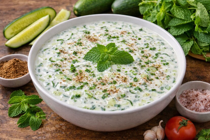 গরমকালে রায়তা কেন অপরিহার্য: গ্রীষ্মের তাপে শরীরের তাপমাত্রা বেড়ে যায় এবং দ্রুত পানিশূন্যতা দেখা দেয়। এমন পরিস্থিতিতে, দই দিয়ে তৈরি রায়তা শরীরকে ঠান্ডা রাখে এবং পানিশূন্যতা প্রতিরোধে সাহায্য করে। দইয়ে থাকা উপকারী ব্যাকটেরিয়া পেট পরিষ্কার রাখে এবং দ্রুত হজমে সহায়তা করে। শসা শরীরে জলের পরিমাণ বাড়ায় এবং পুদিনা শীতল ও সতেজ অনুভূতি প্রদান করে।