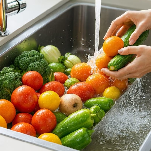ময়লা, ব্যাকটেরিয়া এবং কীটনাশক সহজেই শাকসবজি ও ফলের গায়ে, বিশেষ করে সবজিতে লেগে যায়। এই শাকসবজি ও ফলমূল বাইরে থেকে তাজা মনে হতে পারে, কিন্তু যদি সেগুলো সঠিকভাবে ধোয়া না হয়, তবে তা আমাদের স্বাস্থ্যের জন্য ক্ষতিকর হতে পারে। এগুলো থেকে পেটের সংক্রমণ, ডায়রিয়া, খাদ্যে বিষক্রিয়া এবং কখনও কখনও ত্বকের অ্যালার্জিও হতে পারে।
