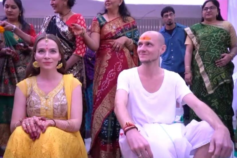 German groom and Russian bride :গুজরাতের হিম্মতনগরের সকরোদিয়ায় বিয়ে হল জার্মান বর এবং রুশ কনের৷ বিয়ে দিলেন গুজরাতি পুরোহিত৷