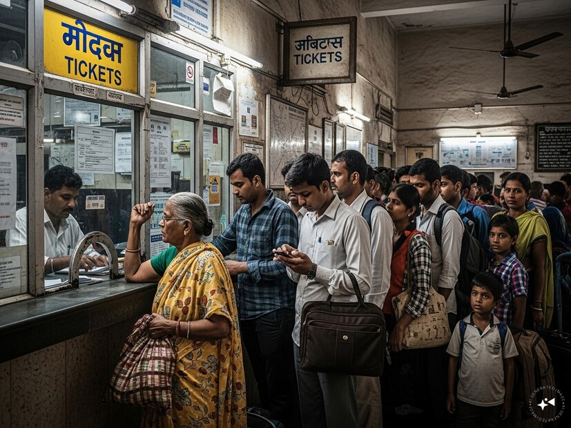 শুধুমাত্র অনলাইনেই নয়, উইন্ডো তৎকাল টিকিট অর্থাৎ, অফলাইনের ক্ষেত্রেও OTP বাধ্যতামূলক করেছে ভারতীয় রেল৷ এর অর্থ হল উইন্ডো বুকিংয়ের সময়, বুকিং ক্লার্ক আপনার মোবাইল নম্বর জানতে চাইবেন, সেটা সিস্টেমে দিলে আপনা মোবাইলে একটি ওটিপি যাবে। আপনি সেটি বুকিং ক্লার্ককে বললে যাচাই প্রক্রিয়ার পরে, আপনার তৎকাল টিকিট তৈরি হবে। এখানে বড় প্রশ্ন হল যাদের মোবাইল ফোন নেই তাঁরা কীভাবে তৎকাল টিকিট কাটবেন? Generated image