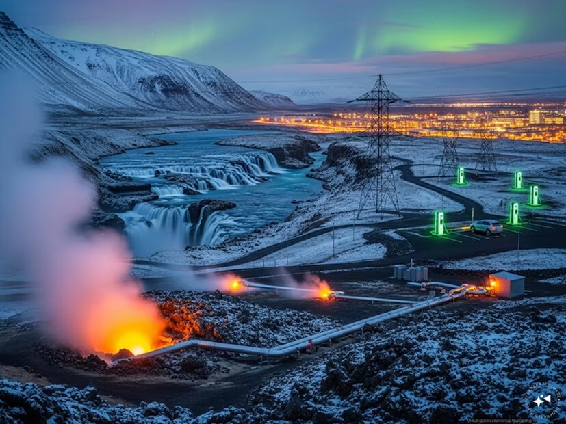 ভূগর্ভস্থ গরম জল সরাসরি পাইপ দিয়ে বাড়ি বাড়ি পৌঁছে দেওয়া হয়, তাই জল গরম করার জন্য তেল প্রায় ব্যবহার করা হয় না বললেই চলে। আইসল্যান্ডের বিদ্যুৎ উৎসের ৭০ শতাংশ জলবিদ্যুৎ এবং ৩০ শতাংশ ভূ-তাপীয়। সেই কারণে বিদ্যুৎ উৎপাদনের জন্য আইসল্যান্ডের কয়লা বা তেলের প্রয়োজন হয় না। আইসল্যান্ডকে প্রায়শই গ্রিন এনার্জির মডেল হিসেবে ধরা হয়। ভূ-তাপীয় শক্তিকে কীভাবে কাজে লাগাতে হয়, সেটা আইসল্যান্ডের কাছ থেকে শেখে বহু দেশই। এমনকী এ-ও বলা হয় যে, যদি পৃথিবীর তেল হঠাৎ শেষও হয়ে যায়, তাহলে আইসল্যান্ড পরিবহণের ক্ষেত্রে চ্যালেঞ্জের মুখোমুখি হবে। কিন্তু এর বাকি এনার্জি সিস্টেম চালুই থাকবে। বর্তমানে এখানকার ৪০ শতাংশ যানবাহনই ইভি। তাই দেশটি মূলত সঙ্কটকালীন সমস্যা কাটিয়ে উঠতে পারবে। আবার আইসল্যান্ডের জনসংখ্যা মাত্র ৩,৮০,০০০। (Representative/AI Image)
