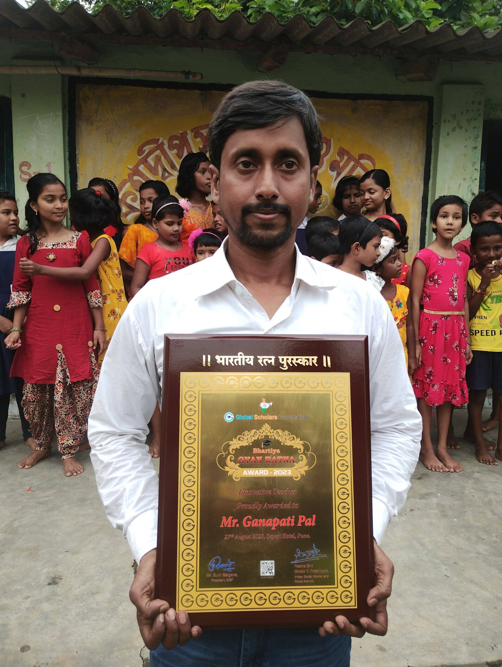 কৃষ্ণপুর প্রাথমিক বিদ্যালয়ের সহকারী শিক্ষক এবং চিত্রশিল্পী গণপতি পাল গ্লোবাল স্কলার ফাউন্ডেশনের পক্ষ থেকে পেলেন ভারতীয় জ্ঞান রত্ন ২০২৩